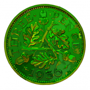 The pictures below are from one item in a series of coin art pieces; this is the 1936 Three-Pence piece, in silver.