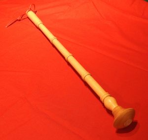 The rest of the device is a Georgian-style turning with small double beads and a tapered end handle.