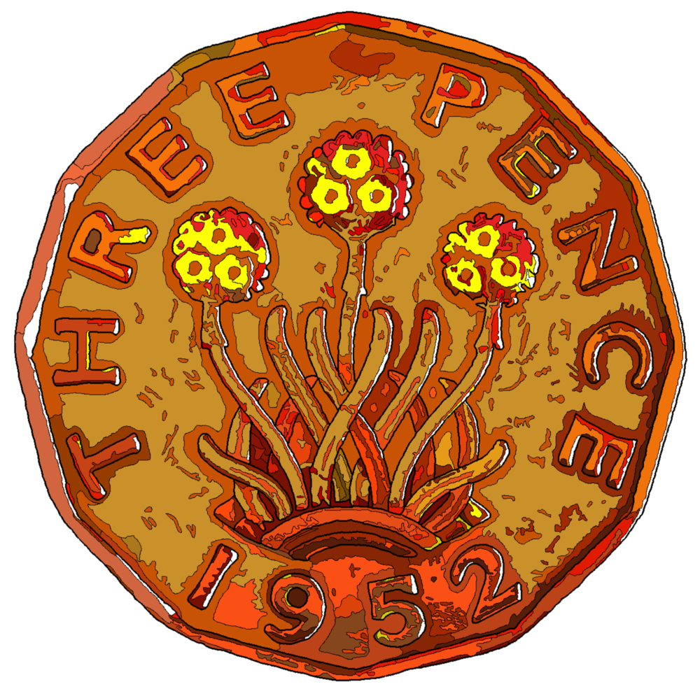 The 1952 threepenny is a complete break with the previous design, and shows the seaside plant known as ‘Thrift’ – a nice numismatic pun