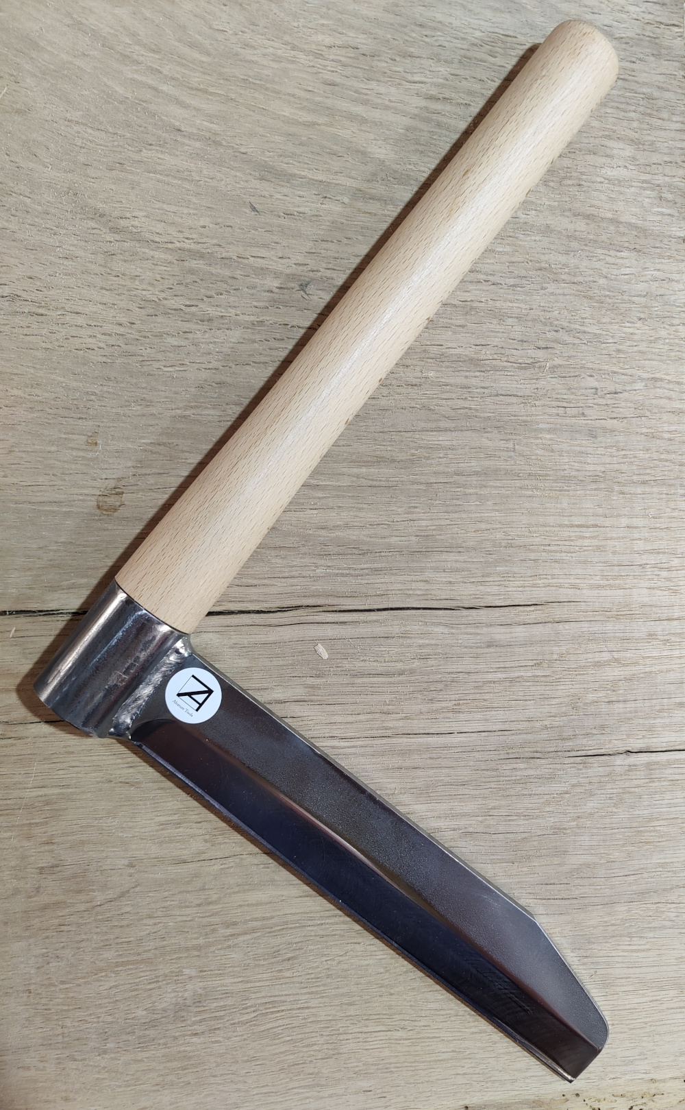 This is a standard froe with a fixed and wedged handle. Blade length is about 265mm – this froe is suitable for most standard applications. Remember to use a wooden mallet only, preferably constructed out of a log or piece of scrap wood